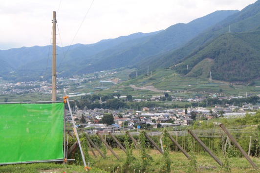 Beim Durchfahren der bergigen Landschaft denke ich zunächst an reinen Obstbau. Die Trauben fallen sofort ins Auge, weil jede einzelne Dolde in einer Papiertüte hängt. Typisch, denke ich, weil wirklich alles was man in diesem Land kaufen kann verpackt ist. Beim Nachfragen entpuppt sich dieser unglaubliche Aufwand jedoch als Schutz vor Regen.